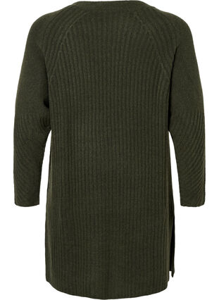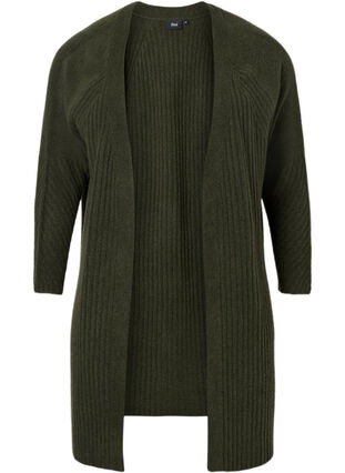 Lång öppen kofta i vacker ribbstickad design med slits i sidan. Koftan är tillverkad i ett mjukt och bekvämt material uppblandat med ull.