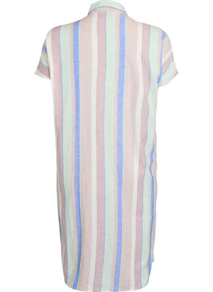 Lång skjorta med korta ärmar och knäppning. Skjortan har lös passform med slitsar i sidorna och är tillverkad i ett mjukt och luftigt blandmaterial av viskos och linne, vilket gör den bekväm och perfekt för varma dagar.