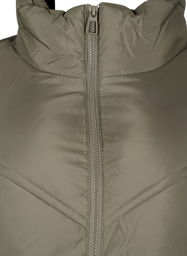 Lång pufferjacka tillverkad av återvunnen polyester med dekorativa diagonala sömmar. Jackan försluts med en tvåvägsdragkedja, har hög krage, sidofickor och ärmar med ribbkant för att förhindra att vinden tränger in.