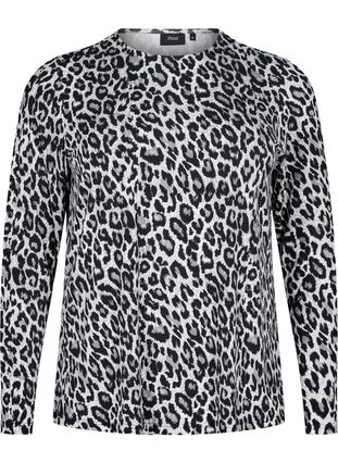 Långärmad blus med leopardmönster