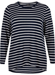 Randig långärmad blus med rund hals och bekväm passform. Blusen är längre baktill och tillverkad i ett härligt material blandat med viskos.