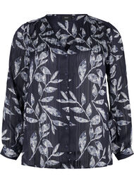 Långärmad tröja med ett vackert, heltäckande mönster, gjord i ett lättviktigt material med 65 procent återvunnen polyester. Tröjan har normal passform med hellånga knappar, v-ringning och muddar på ärmarna.