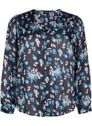 Långärmad tröja med ett vackert, heltäckande mönster, gjord i ett lättviktigt material med 65 procent återvunnen polyester. Tröjan har normal passform med hellånga knappar, v-ringning och muddar på ärmarna.