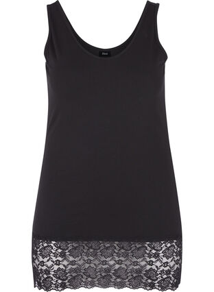Fin enfärgad bastopp med en bred spetskant i nertill. Linnet har en rund halsringning och är tillverkad i en mjuk bomullskvalitet.