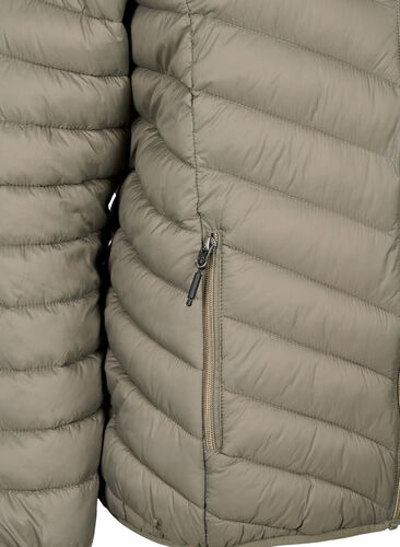 Lättviktsjacka i kort modell med huva och dragkedja framtill. Den har praktiska fickor med dragkedja, resår i ärmarna och i nederkant för att förhindra att vinden kommer in. Jackan är fodrad med dupont, vilket är en lättviktig fyllning som både håller dig varm och andas.