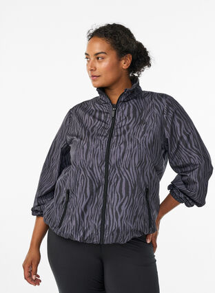 Lätt jacka i sportig design med coolt zebramönster, hellång dragkedja och hög krage som skyddar mot vind. Resår i ärmsluten ger extra komfort, och dragsko nedtill gör att du kan justera passformen. Perfekt för aktiva dagar och utomhusträning.
