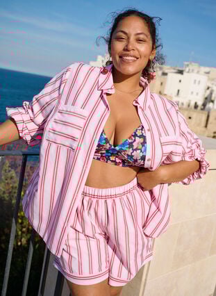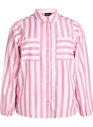 Lös skjorta med ett vackert randigt mönster i ett lätt och smidigt tyg som känns skönt mot huden. Skjortan har en klassisk krage, helknappstängning, bröstfickor och långa ärmar med elastiska muddar.