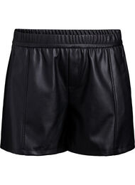 Shorts i läderimitation med lös och bekväm passform. Shortsen har hög midja med resår, sidofickor och en icke-funktionell gylf framtill.