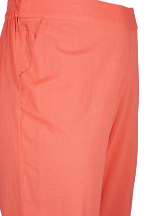 Lösa och bekväma byxor med sidofickor och hög midja med resår bak. Byxorna är tillverkade i ett mjukt linne- och bomullstyg som andas, vilket gör dem perfekta för varmare dagar.