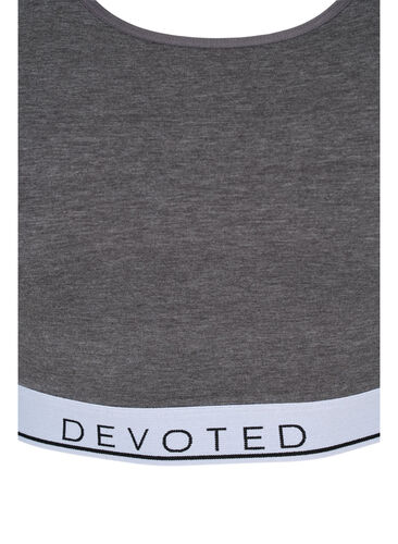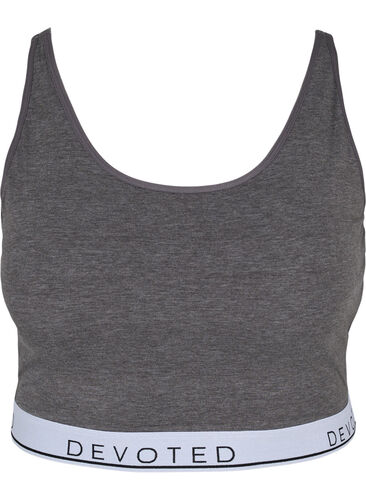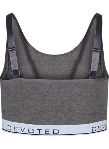 Väldigt bekväm bh utan bygel med en fin melerad look, rund halsringning och justerbara band. Bh:n är gjord i stretchig bomullsblandning och sitter väldigt nära kroppen, så att du får maximal komfort. Den har även en resår med snygg text i nederkant.