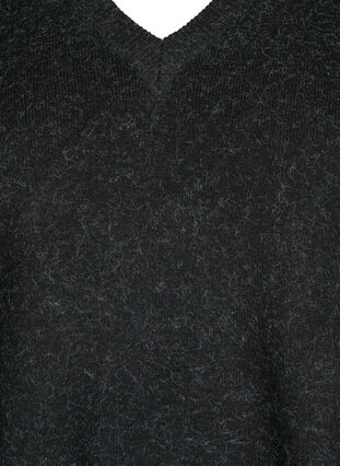 Mjuk melerad tröja tillverkad av 94 % återvunnen polyester. Den stickade tröjan har v-ringning och breda ribbade muddar i ärmslut och nederkant.