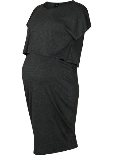 Bekvämt tvådelat gravidset i melerad jersey. Setet består av en kortärmad topp och en midikjol med elastisk midja och små veck i sidan för att ge plats för den växande magen.