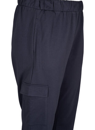 Bekväma sweatpants i en fin svettkvalitet med bomull och cargofickor. Dessa sweatpants har en hög midja med elastiskt midjeband, sidofickor och är avslutade med elastik vid fotöppningen.