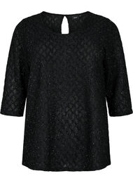 Blus med vackert glittermönster och 3/4 ärm. Blusen har rund halsringning med nyckelhålsstängning i nacken och en normal passform.