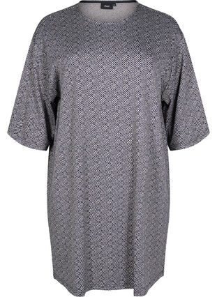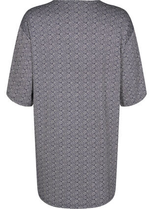Kort, feminin klänning med mönster i ett lätt och skönt viskosmaterial. Klänningen har rund halsringning, 3/4-långa vida ärmar och normal passform.