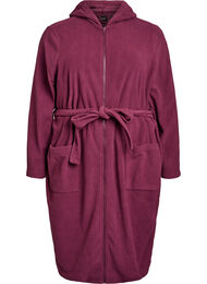 Mjuk morgonrock med dragkedja och huva. Morgonrocken har fickor på framsidan och snörning i midjan.