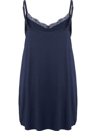 Tjusigt nattlinne i bekväm viskos med stretch. Den har en enkel design med tunna, justerbara band och en v-ringad hals med spetskant. Nattlinnet har en A-linjeformad modell och faller väldigt fint på kroppen.