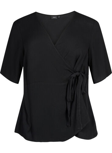Kortärmad blus i en mjuk kvalitet av 100% LENZING™ ECOVERO™ viskos. Blusen är v-ringad och har ett knytband i midjan, vilket skapar en feminin siluett.