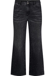 Raka jeans med strass och hög midja