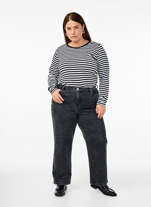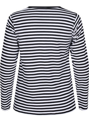 Långärmad blus med ribbstickad textur och ränder. Blusen har normal passform, rund halsringning och är tillverkad i en mjuk bomullskvalitet.