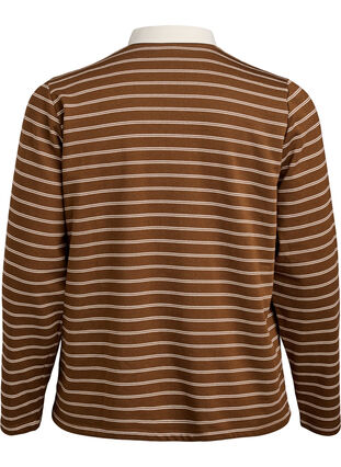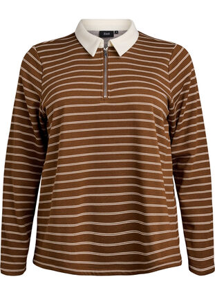 Randig blus med klassisk pikékrage i kontrastfärg och en kort dragkedja framtill. Blusen har långa ärmar, normal passform och är tillverkad i ett mjukt blandmaterial.