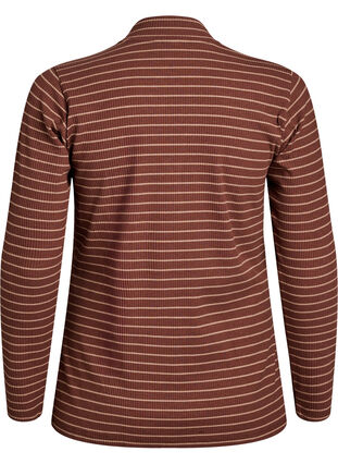 Tidlös basblus i mjuk och stretchig bomullsjerseykvalitet med ribbstickad textur och randigt mönster. Stilen har hög hals, långa ärmar och en bekväm passform med lätt a-linjeformad silhuett. Ett mångsidigt plagg som funkar perfekt ensam eller lager-på-lager under en stickad tröja eller väst.