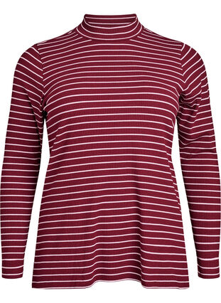 Randig ribbad jerseyblus med hög hals