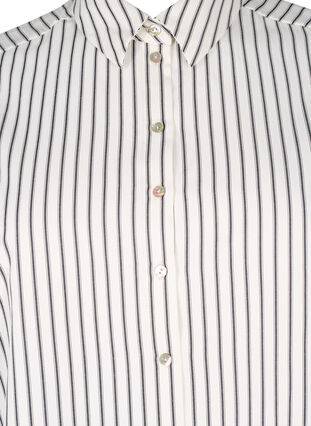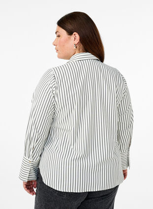 Randig skjorta med krage och knäppning hela vägen fram. Skjortan har långa ärmar med vida manschetter och knappar samt en bekväm passform.