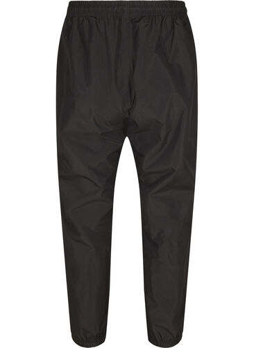 Regnbyxor i en andningsbar kvalitet med lös passform och tejpade sömmar, vilket gör att vatten inte tränger in. De har resår och dragsko i midjan.