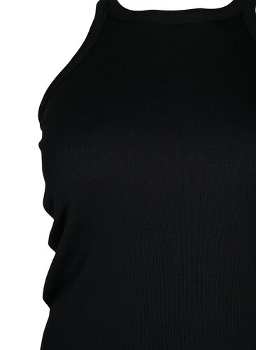 Kroppsnära linne i ribbad bomull, som har en rund halsringning och är smalt skuret upptill.