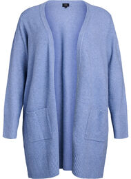 Lång melerad kofta i skön kvalitet av 94 % återvunnen polyester. Koftan har sidofickor och höga ribbade kanter på de långa ärmarna och nedtill.