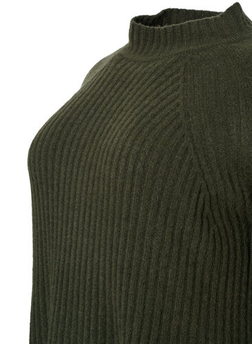 Skön stickad tröja i mjuk materialblandning med ull. Den stickade tröjan har snygga ribbade detaljer, en normal passform med hög hals och slitsar i sidorna.