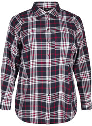 Rutig skjorta i 100 % bomull med normal passform. Skjortan har en klassisk design med skjortkrage, långa ärmar med manschetter och knappar, en bröstficka och knäppning med knappar framtill.