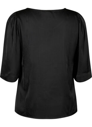 Satängblus med halvlånga ärmar