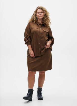 Skjorta i imitationsmocka med en bekväm, stretchig finish och en normal passform. Skjortan har klassisk skjortkrage, tryckknappar längs hela framsidan och långa ärmar med manschetter. Designad med dekorativa bröstfickor framtill.