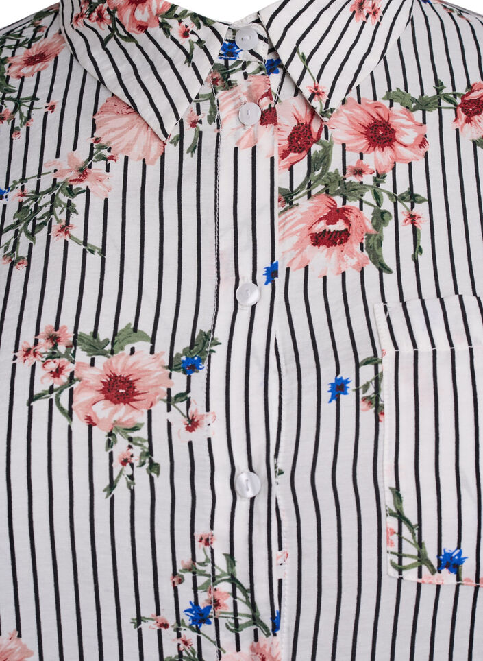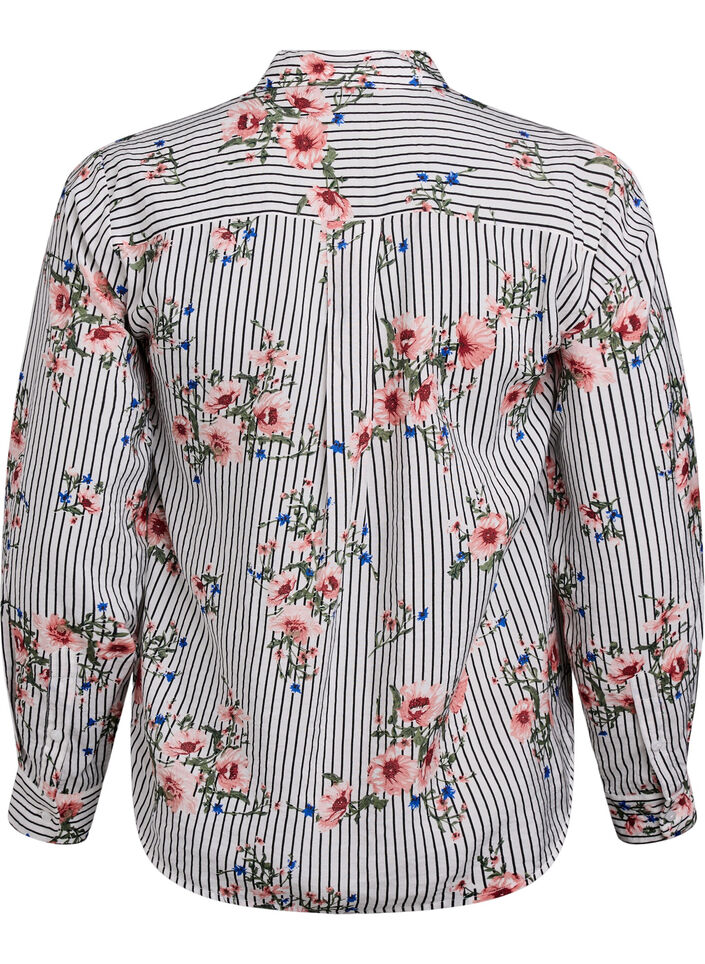 Skjorta med blommönster och smala ränder