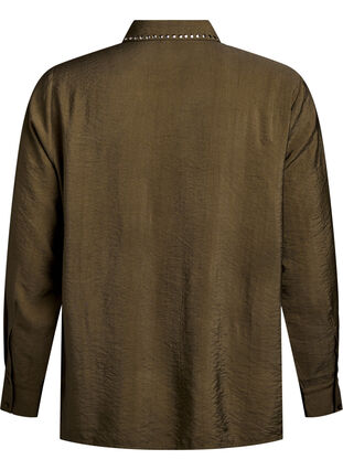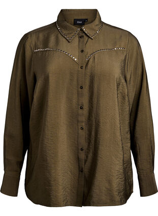 Skjorta i en lätt, vävd viskoskvalitet med dekorativa nitar längs kragen och oket fram, vilket ger en westerninspirerad look. Modellen har normal passform med klassisk krage, knäppning fram och långa ärmar med manschetter.