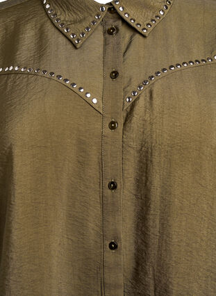 Skjorta i en lätt, vävd viskoskvalitet med dekorativa nitar längs kragen och oket fram, vilket ger en westerninspirerad look. Modellen har normal passform med klassisk krage, knäppning fram och långa ärmar med manschetter.