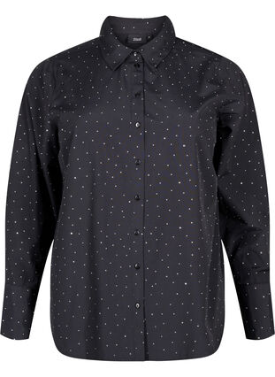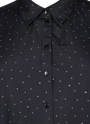 Snygg skjorta dekorerad med strass på framsidan, ärmarna och övre delen av ryggen för en feminin look. Skjortan har en hellång knappstänging, krage och är tillverkad i en kvalitet med 52 % återvunnen polyester och har en lös passform.