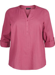 Fin skjortblus med lös passform och lätt struktur. Den är tillverkad i en mjuk bomullskvalitet och har långa ärmar som kan visas upp och v-ringad hals med knappar.