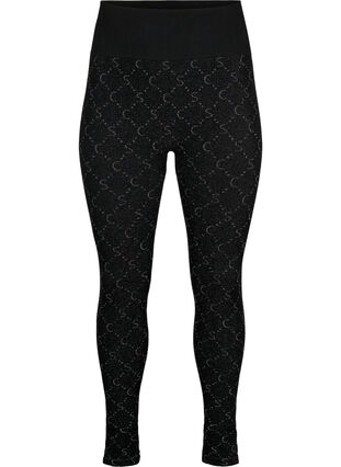 Leggings med vackert silverglittrande mönster och tight passform. Dessa leggings har inga sömmar, vilket ger hög komfort utan irriterande sömmar och stygn.