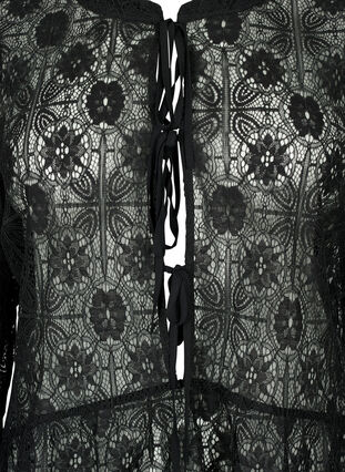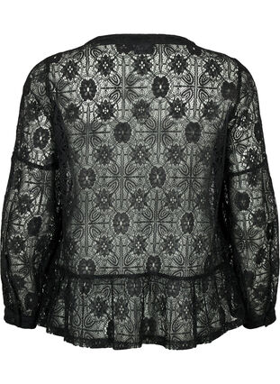 Långärmad blus i vacker spetskvalitet, utan foder. Blusen har en dekorativ knytdetalj framtill.