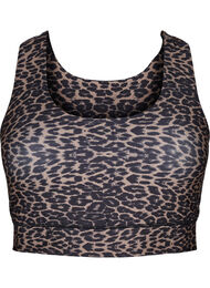 Sportopp med trendigt leopardmönster, tillverkad i ett stretchigt och ventilerande material som garanterar optimal komfort under träning. Bh:n har racerback och bred elastisk kant under bysten för mediumstöd, vilket också ser till att bh:n sitter på plats.