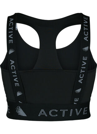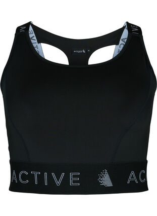 Cool sportbehå med en brottarrygg och ett sportigt texttryck på axelbanden och under bysten.