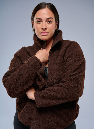 Mysig fleecejacka i mjuk, teddyinspirerad textur som känns lätt och skön mot huden. Den har hög krage, dragkedja, sidofickor och en avslappnad, bekväm passform. Perfekt för lager på lager, vardagskomfort och lätta utomhusaktiviteter.