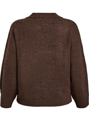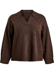 Ledig stickad blus i ett mjukt och lätt material med 64% återvunna fibrer och 6% ull, vilket ger en varm och skön känsla. Stilen har en klassisk krage med v-ringning, långa ärmar och lös passform med ribbade kanter i ärmar och nederkant.