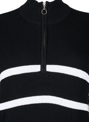 Trendig stickad klänning med kontrasterande ränder, långa ärmar och hög hals med dragkedja. Klänningen har en lös passform och är tillverkad i en mjuk bomullsblandning.