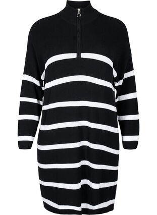 Stickad klänning med ränder och dragkedja