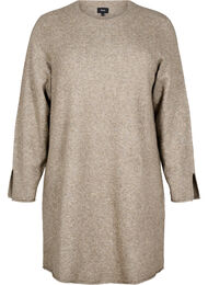Klänning stickad i ett mjukt och skönt material med ull och 35 % återvunnen polyester. Klänningen har långa ärmar och avslutas med slitsar och ribbade kanter i både ärmar och nederkant.