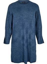 Klänning stickad i ett mjukt och skönt material med ull och 35 % återvunnen polyester. Klänningen har långa ärmar och avslutas med slitsar och ribbade kanter i både ärmar och nederkant.